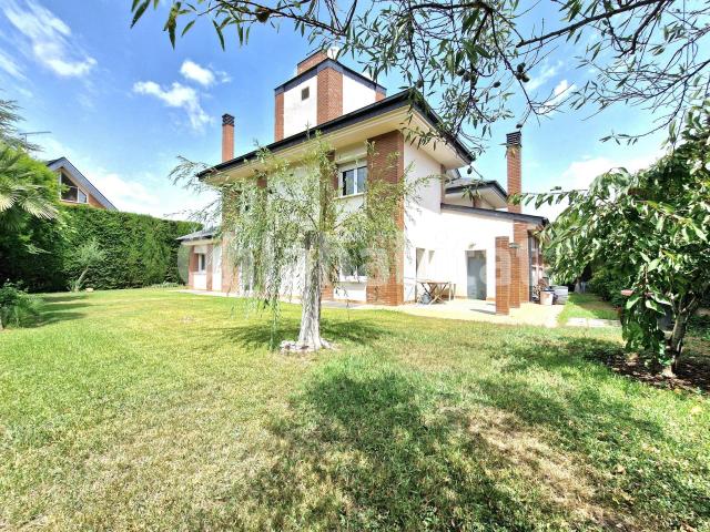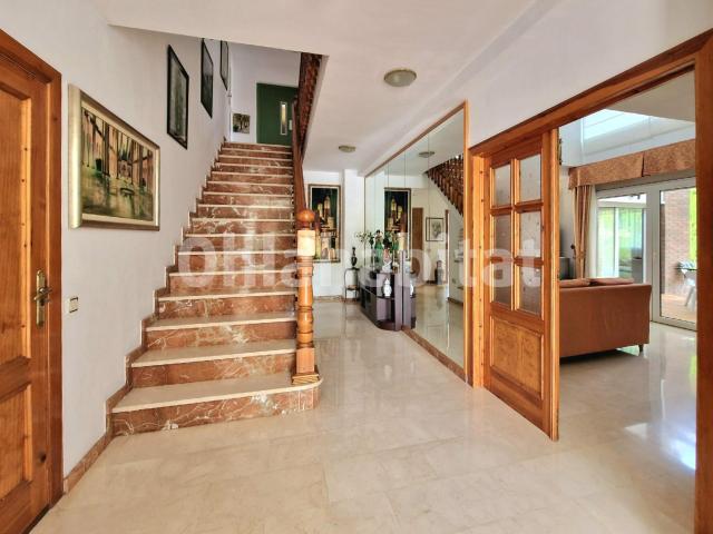 La casa se distribuye en tres plantas con amplias y cómodas estancias, más planta sótano destinada principalmente a aparcamiento, comunicadas a través de una señorial escalera y ascensor que recorre todas las plantas. Al acceder al inmueble por la planta principal, un elegante recibidor nos da la bienvenida y nos conduce al salón- comedor,parte en doble altura, con chimenea, cocina-office comunicada con el agradable porche comedor de verano; 3 habitaciones dobles, una de ellas una práctica suite con baño, un aseo y un segundo aparcamiento en planta con acceso directo a la vivienda. La planta primera está compuesta por 4 habitaciones ( 3 dobles y 1 individual) dos de las cuales tienen salida a unas frescas terrazas, compartiendo 2 baños. La planta segunda es toda buhardilla con salida a solárium.