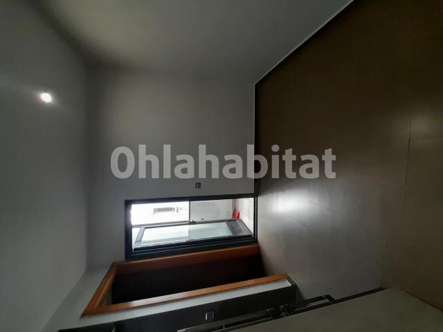 Entre sus calidades destacan las ventanas de aluminio con doble acristalamiento y apertura oscilobatiente en color gris, las puertas correderas en pino natural que optimizan el espacio, y los suelos de gres de alta calidad en tono gris, que aportan elegancia y continuidad a todo el conjunto.