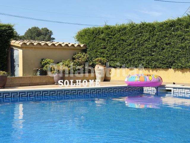 Un salón-comedor amplio, con salida al porche y a mi joya del verano: una piscina privada lista para los días de sol y siesta.