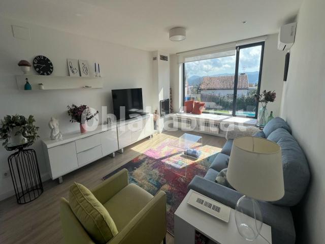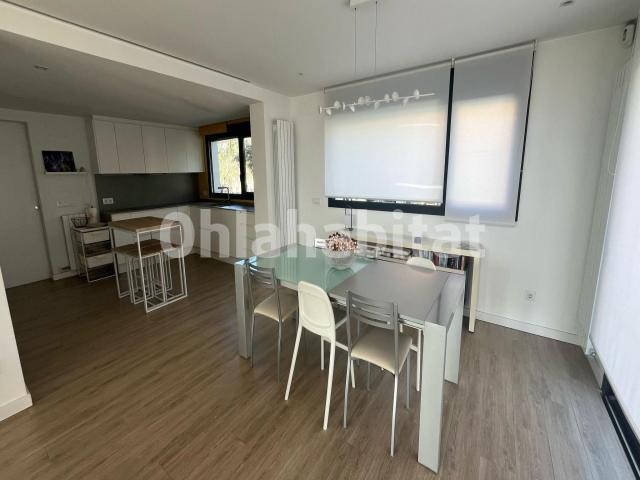 La casa se distribuye en un recibidor-pasillo, salón-comedor con chimenea y salida a la terraza y al jardín, y un segundo salón-comedor con chimenea y cocina office con acceso directo al exterior.