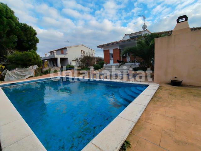 La parcela, completamente llana, tiene una superficie de 940 m y está muy bien aprovechada: dispone de una magnífica piscina de 10x5 metros, zona ajardinada con árboles, una bonita barbacoa y un amplio patio frontal. Gracias a su orientación sur, la casa recibe sol durante todo el día.