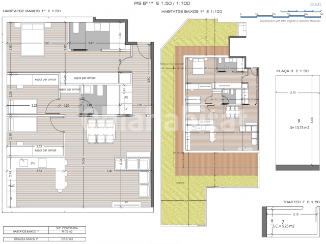 _ Planta baja: espectacular vivienda de 99,70m construidos más una terraza de 127,87m , perfecta para disfrutar del aire libre en la intimidad del hogar. Dispone de 3 habitaciones y 2 baños, con una distribución amplia, luminosa y funcional.