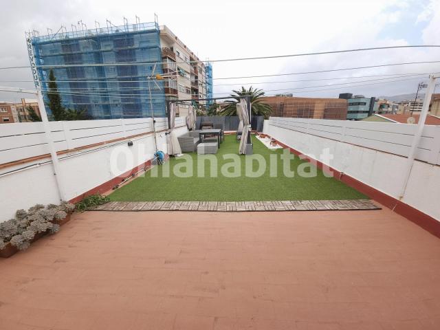 La terraza en la planta superior, equipada con césped artificial, toma de luz y agua, con zona de barbacoa, es el lugar perfecto para relajarse o disfrutar de comidas al aire libre