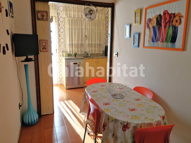 Pis de 4 habitacions (2 dobles i 2 individuals), ampli saló-menjador, cuina office independent equipada , 1 bany complert, 1 lavabo, i rebedor. Fusteria exterior de fusta, mosquiteres a les habitacions, terra de gres, calefacció elèctrica. Disposa d_aire condicionat al saló-menjador i al passadís. Te 2 balcons amb tendals, i en un d ells una barbacoa. Completament moblat i amb electrodomèstics. Disposa de traster i 1 plaça d aparcament.