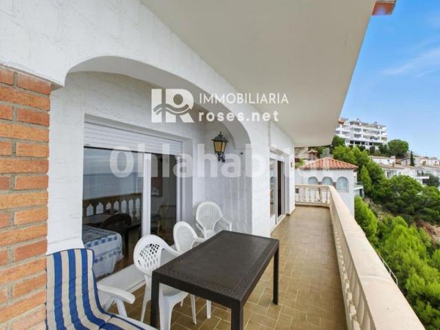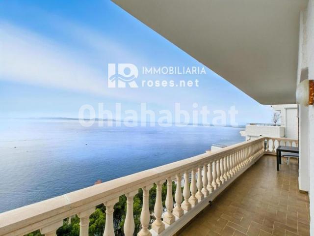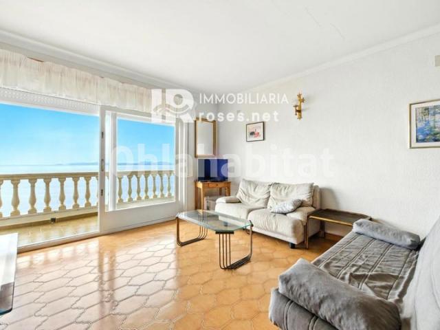 Apartamento en venta con espectaculares vistas al mar y a la bahía de Roses.Disfrute de la magia del Mediterráneo desde este encantador apartamento, donde la luz y las vistas son las auténticas protagonistas. La vivienda dispone de un amplio salón-comedor con acceso directo a una gran terraza con impresionantes vistas al mar, perfecta para relajarse o compartir momentos inolvidables. Cuenta además con una cocina americana, un baño espacioso y dos dormitorios con armarios empotrados. Gracias a su excelente orientación sur, el apartamento recibe sol durante todo el día, creando un ambiente cálido y lleno de vida. Para los amantes de las reuniones al aire libre, la vivienda incluye una práctica barbacoa ideal para disfrutar con la familia y los amigos. Un lugar perfecto para vivir o pasar sus vacaciones frente al mar. ¡Venga a visitarlo y déjese enamorar por sus vistas!