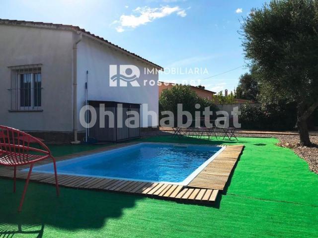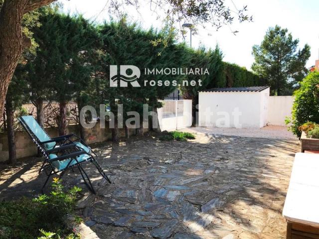 Casa en venta ubicada en la urbanización Mas Boscà, entre 2 calles (2 entradas al jardín), a unos 3 km de la ciudad de Roses y a unos pasos de los campos. La casa consta de una sala de estar / comedor, una cocina separada, 2 dormitorios con armarios empotrados, un cuarto de baño con ducha, y un W.C. Tiene ventanas de PVC con doble cristal, aire acondicionado y se vende amueblada. Al exterior, una terraza cubierta, un amplio jardín con una piscina, y un trastero. Opcional, se puede ampliar la casa o añadir una segunda planta. La casa es ideal para vivir todo el año o como segunda residencia para pasar agradables vacaciones, así como para invertir en alquiler de temporada.