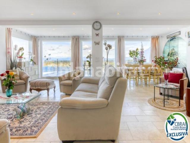 Descubra esta magnífica propiedad con carácter situada en la prestigiosa colina del Puig Rom, en Roses. Una villa de estilo mediterráneo que combina calidez, elegancia y funcionalidad en un entorno privilegiado, con espectaculares vistas panorámicas al mar, la bahía de Roses, las montañas del Alt Empordà y, en días claros, hasta los majestuosos Pirineos. Todo con una orientación oeste, ideal para disfrutar de atardeceres inolvidables desde casi todos los rincones de la casa.