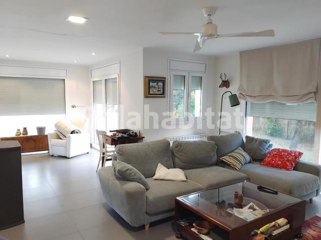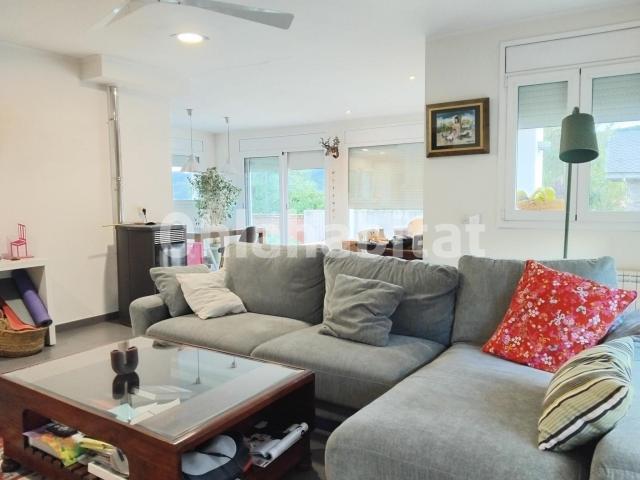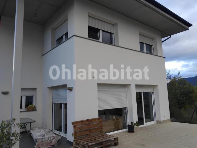 Fantástica casa a cuatro caras de 371m2 construidos en parcela de 748m2 en la urbanización Balcón del Pirineo. Ubicada en la mejor zona de la urbanización con magníficas vistas y mucha soleada. Dispone de gran salón comedor con cocina abierta a la sala, 4 dormitorios dobles, tres baños, gran terraza a nivel del salón comedor y garaje para 2 coches.